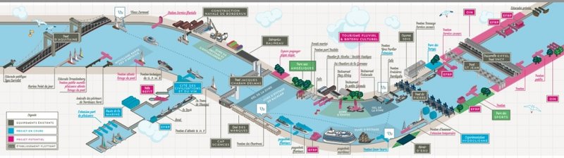Face à cette déferlante de projets, le Schéma s'annonce, pour les porteurs de projets et les aménageurs, comme un guide indispensable en rassemblant dans un document unique contraintes naturelles et techniques, réglementations, état des berges et grands projets urbains. Il détaille, tronçon par tronçon, usages actuels et projets et précise les "activités conseillées" (selon les tronçons : restauration, tourisme, culture, loisirs, promenade, plaisance, transport fluvial, logistique...) et les "activités interdites" (établissements de nuit, le plus souvent).