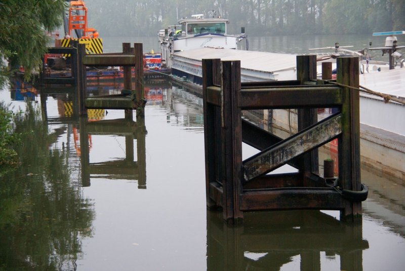 Le son de cloche est tout différent chez les bateliers qui n'avaient jamais sérieusement envisagé que ces ducs-d'albe, posés en 1963 par l'ancienne station à carburant, puissent un jour disparaître. "Ces ducs-d'albe étaient formés chacun de quatre pieux de 14 m de haut. On pouvait y amarrer deux bateaux bout à bout, et trois côte à côte, et des bateaux de fort tonnage. C'était du costaud. Des ouvrages comme ceux-là, on en rêve...", regrette Jacques Delhay, secrétaire national de La Glissoire, auteur de la lettre de la batellerie Cap à l'amont et patron de l'"Esmeralda".