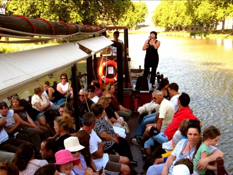 - Sur l'eau : Fafa Bayle et ses "Verbieuses", vont lire, écrire et faire écrire à bord de "Tamata", la péniche-épicerie du Somail ; le guitariste de jazz, Éric Pastor, va faire tanguer la gabare "La Capitane" ; et le loueur et créateur de bateaux, "Nicols", fera visiter son tout dernier bateau, l'"Octo".