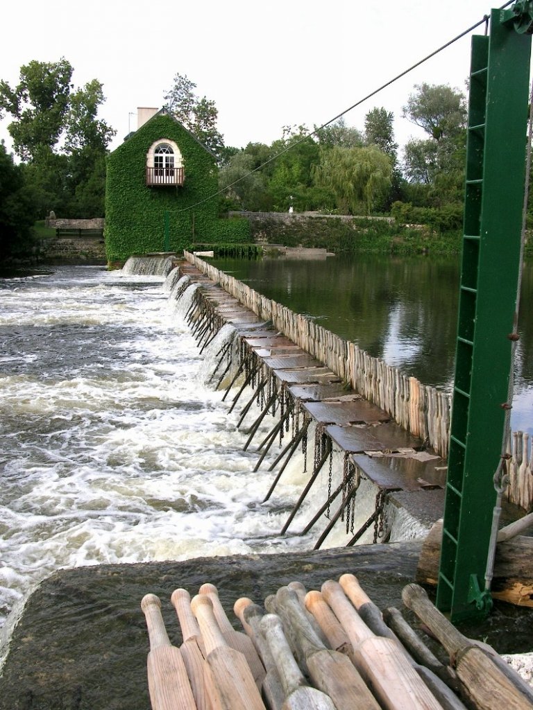(*) NOTE => Construits au 19ème siècle, les barrages à aiguilles sont une innovation technologique majeure pour l'époque. On pouvait enfin barrer d'importantes largeurs de rivière avec une structure mobile, et ainsi faciliter et développer la navigation commerciale. C'est sur le Cher qu'a été décidée, pour la première fois, l'utilisation de cette technique, en la standardisant pour 16 barrages. Le modèle a été ensuite reproduit en France et en Europe.