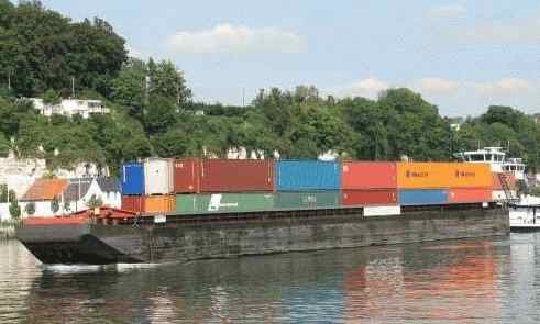 Des conteneurs sur la Loire, entre Nantes et Montoir