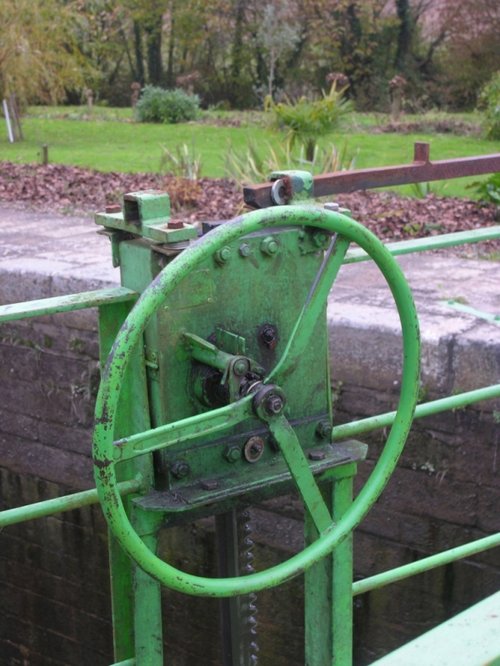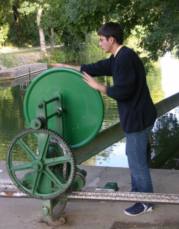 Ce grand volant remplace, pour des raisons de sécurité, les manivelles des portes des écluses sur la Seille.