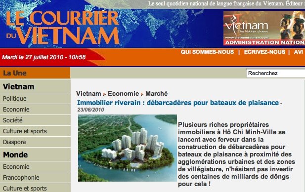 Cent trente anneaux permettront bientôt d’amarrer des bateaux de plaisance au cœur du projet immobilier de "Saïgon-Pearl". Quant au projet "Diamond Pearl", dont le coût est estimé à 300 millions de dollars, il inclura un débarcadère pour une trentaine de bateaux de plaisance... ....