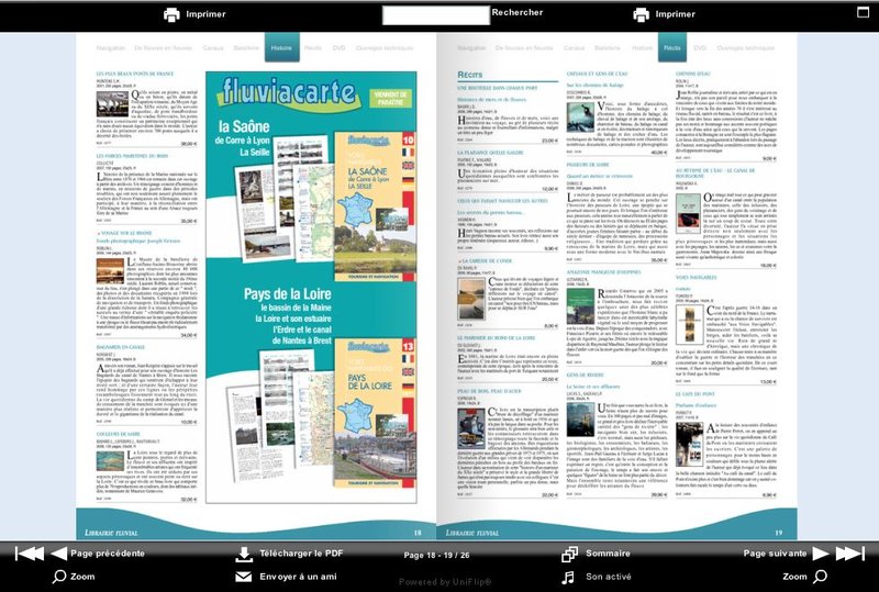 Ça y est : on peut tourner les pages et feuilleter en ligne le catalogue des livres et des guides de navigation sélectionnés par la librairie FLUVIAL. C'est sur le site de notre librairie (www.librairiefluvial.com), et c'est une petite prouesse informatique assez sympathique.
