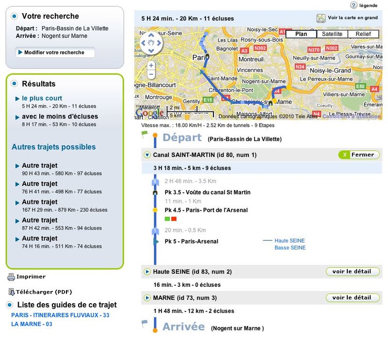 Puis votre trajet s’inscrit sur une grande carte "Google-Map", et la croisière commence…