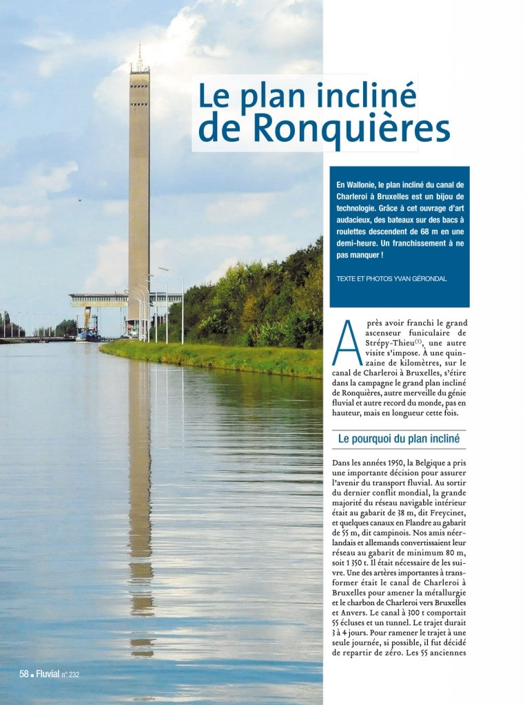 En Wallonie, le plan incliné du canal de Charleroi à Bruxelles est un ouvrage d’art audacieux qui défie les tablatures. Montés sur des bacs à roulettes, les bateaux escaladent ou dévalent 68 m en une demi-heure. À seulement quelques kilomètres de celui qui fut le plus haut ascenseur à bateaux du monde, le plan incliné de Ronquières en est toujours le plus long.