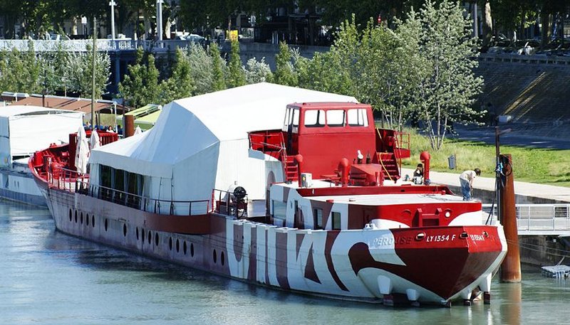 Le bateau - aujourd'hui "bateau-événements" - est amarré 4 quai Augagneur à Lyon, sur le Rhône, et peut accueillir 700 personnes.