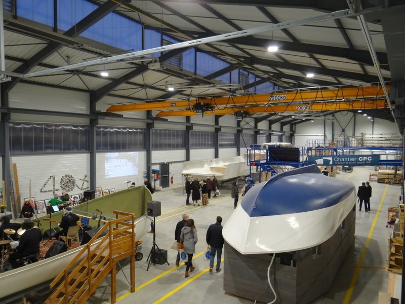 « Leur surface est sensiblement la même, mais nous avons profité de cette reconstruction pour améliorer le site. » En effet, il existe désormais 2 chaînes parallèles : l’une destinée exclusivement à la fabrication des habitats flottants non-motorisés (Toue cabanée, Fredaine, Rêve de Robinson…) ; l’autre à la réalisation de bout en bout des bateaux. Lors de notre visite, c’est un Tarpon, un grand classique des chantiers C.P.C. (modèle créé à Digoin en 1991, décliné depuis en 4 tailles), qui est en cours de réalisation. « Nous avons doté nos nouveaux ateliers d’un pont roulant parcourant entièrement la structure, on gagne ainsi en commodité », soulignait A. Carignant. Les nouveaux ateliers étant des plus fonctionnels, les carnets de commandes remplis et les ouvriers heureux de recouvrer leur travail, 2022 débute heureusement pour le chantier C.P.C. !