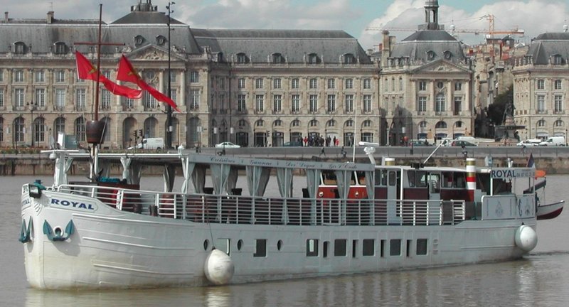 Denis Gesta, le patron du "Royal", était à la barre. Pendant toute la durée de l'interview, en pleine marée montante, il a maintenu le bateau immobile sur la Garonne en face de la place de la Bourse.