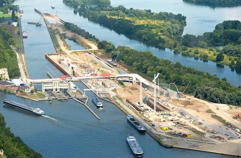 Comme les ports d’Anvers et de Rotterdam arrivent au bout de leurs capacités de stockage et qu'il n’y a plus de terrains disponibles, les porte-conteneurs de plus en plus grands doivent bien être déchargés. Le choix de Liège, à 12 h de navigation d’Anvers et à 24 h de Rotterdam, s’est donc imposé. Mais les 3 écluses - deux de 55 m x 7,5 m (capacité de 600 t chacune) et une de 136 m x 16 m (capacité de 2.000 t) - construites dans les années 1960, étaient devenues sous-dimensionnées au regard des 11 Mt qui transitent chaque année par Lanaye (25 % du tonnage transporté par la voie d’eau en Wallonie), un chiffre qui devrait doubler dans les 20 prochaines années, avec une prévision de 50 000 passages de bateaux à l’horizon 2050. Et chaque fois que 9 000 t transiteront par la nouvelle écluse, ce seront 400 camions qui n’encombreront plus nos routes.