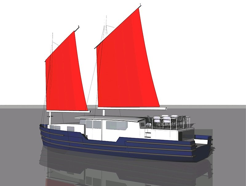 Douze acquéreurs sont attendus, qui devront chacun débourser 12.000 euros pour posséder un treizième du bateau. Construit grâce à une douzaine de bénévoles qui s’engagent à être présents pendant deux ans, une journée par semaine, sur le chantier, le bateau sera à propulsion électrique ou hybride. Il sera muni de deux voiles « au tiers » (la vergue du haut est attachée en son tiers sur le mât) à la manière des barges de Rance. Là s’arrête le point commun avec les bateaux traditionnels puisque la forme du bateau, dessinée par l’architecte naval Frédéric Neuman, sera résolument moderne. La coque, longue de 13,70 m pour une largeur de 3,90 m, sera constituée de contreplaqué-époxy.