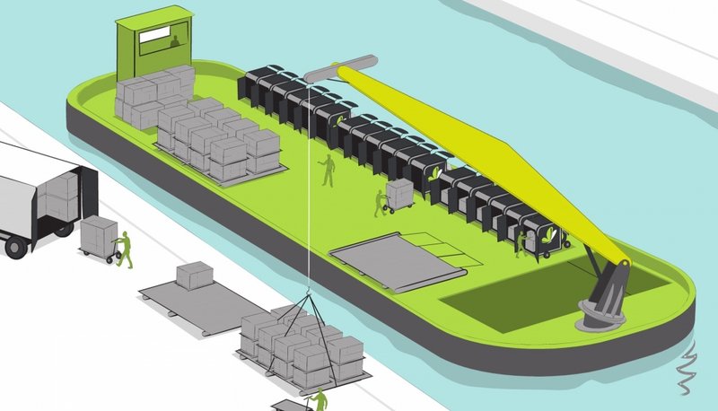 La solution, c’est une « plateforme logistique flottante », un Freycinet ("Vokoli", l’ancien "Enaïd", construit en 1953 par le chantier "Plaquet" de Péronnes, en Belgique) entièrement réaménagé, qui dessert chaque jour dix escales dans Paris au départ du port de Tolbiac ‘(13e).