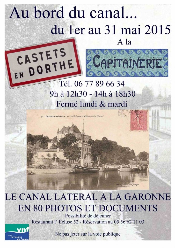 Du 1er au 31 mai, la capitainerie de Castets-en-Dorthe (Gironde), sur le canal de Garonne, et son capitaine, Bruno Chanal, proposent une exposition de plus de 80 photos anciennes autour du canal. Clichés rassemblés par des collectionneurs, photos de famille et cartes postales du début du siècle évoquent le temps, pas si lointain, où le canal était utilisé pour le trafic commercial. ....