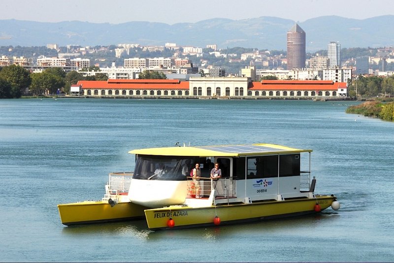 D’août à octobre 2011, la navette expérimentale mise en place sur le canal de Jonage a assuré 219 croisières et transporté 12.300 passagers. Le projet a soulevé l’enthousiasme des habitants de tout l’Est Lyonnais et a été Lauréat des Mariannes d’or 2011 (coup de cœur du Jury) du groupe Progrès. Souhaitant maintenant transformer l’essai, le syndicat a lancé un appel à la concurrence pour l’acquisition d’un catamaran électrosolaire pouvant transporter 70 passagers assis et 13 vélos. L’esthétique du bateau, qui doit devenir le symbole d’une nouvelle image du Rhône amont, fera l’objet d’un intérêt tout particulier.