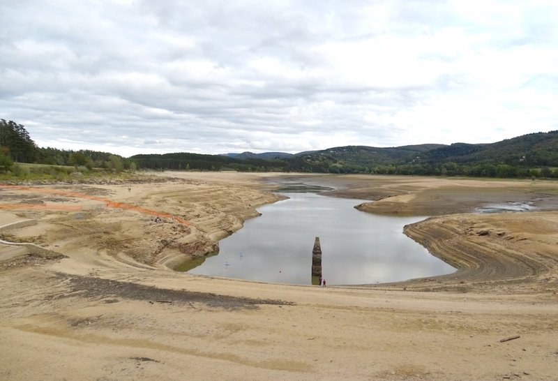 À cheval sur trois communes, Revel, Sorèze et Brunels, et trois départements, Haute-Garonne, Aude et Tarn, le lac de St-Ferréol assure, depuis sa construction par Pierre-Paul Riquet en 1672, l'alimentation du canal du Midi pour la navigation et l'irrigation. Son mur-digue de 871 m de long et 35 m de haut retient plus de 6 millions de m3. C'est dire si la vidange du plan d'eau, qui n'avait pas eu lieu depuis 12 ans, est un évènement local. Les consignes de sécurité sont cependant claires : il est strictement interdit d'aller gambader dans les paysages lunaires du lac asséché, sous peine d'y rester enfoncé dans la vase. Les curieux sont donc invités à admirer depuis un belvédère le lac et la colonne-toise qui n'apparaît que lors de la baisse des eaux. En novembre, le Musée et Jardins du canal du Midi proposait visites guidées et conférences sur l'histoire de l'ouvrage.