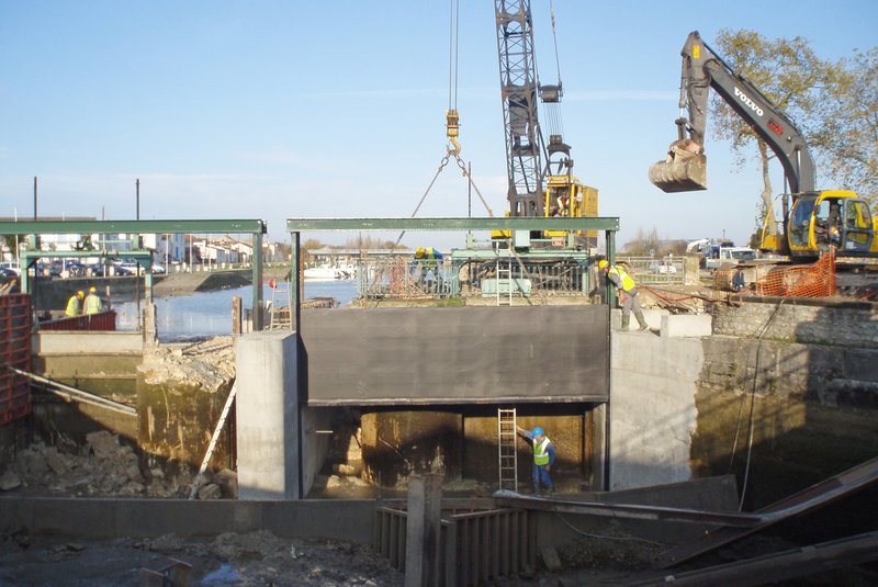 L'ancien pont à écluses du XIXe siècle, qui comportait trois ouvrages, donnait de sérieux signes de faiblesse et ne permettait plus de réguler correctement les variations de niveau de la Seudre dues aux marées. L'ouvrage est donc entièrement à neuf, avec la pose de deux écluses neuves et un gabarit élargi, pour faciliter la circulation piétonne et automobile. Le pont se voit même gratifié d'une passe à civelles. Coût total du chantier : un million d'euros. Les travaux devraient se poursuivre tout l'hiver, la réouverture du pont est programmée pour février 2009. L'ouvrage ne servant qu'à réguler le niveau de la Seudre et non à sasser des bateaux, la navigation n'est pas affectée.