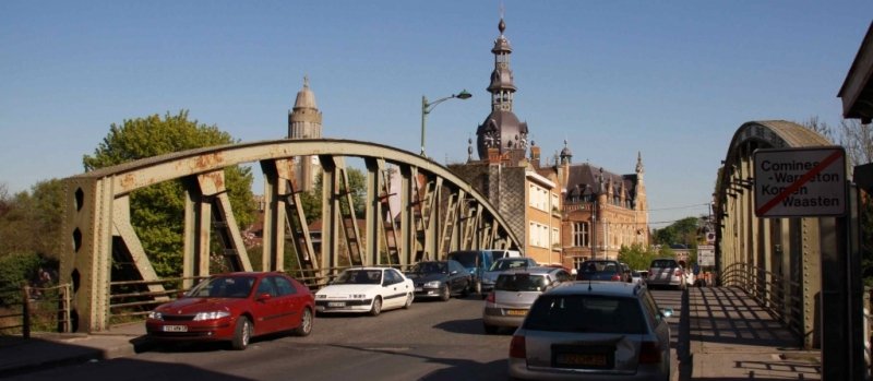 Le pont-frontière entre Comines (France) et Comines-Warneton (Belgique) doit être relevé pour atteindre la hauteur réglementaire de 5,25 m nécessaire à la réalisation du canal à grand gabarit programmé entre Dourges et Halluin. Le chantier sera l’occasion de remettre en état les structures métalliques et d’adapter des rampes de chaque côté de l’ouvrage. Côté français, les trottoirs bas seront doublés de trottoirs hauts pour réduire la largeur de la chaussée et empêcher le stationnement sauvage.