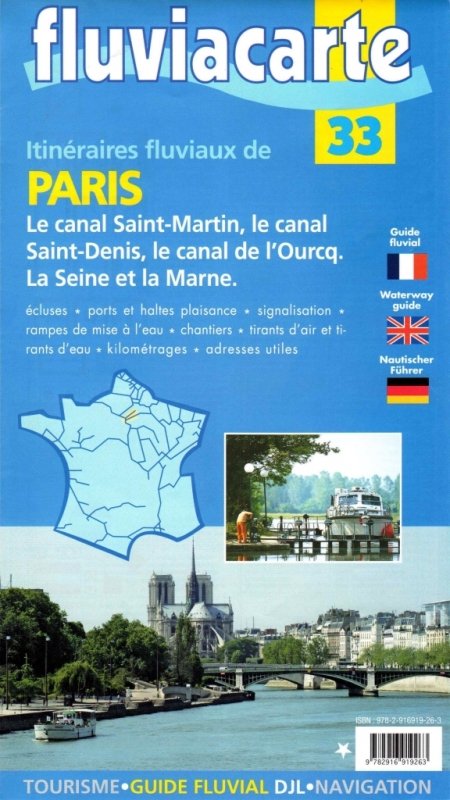 NOTE => La "Fluviacarte" 33 présente sur une grande carte (98 cm x 59 cm - pliage accordéon) les trois canaux parisiens (canal de l’Ourcq, canal Saint Denis et canal Saint Martin), ainsi que la Seine de Bezons à Charenton, et la Marne jusqu'à Courtaron : cf le "Murmure" du 22 avril 2010 - "Carte fluviale des voies d'eau de Paris".