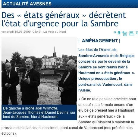 Rouvrez Vadencourt ! Réunis en "États Généraux" à Hautmont, la semaine dernière (14 mai 2009), les élus de l'Aisne, du Nord, du Pas de Calais et de Wallonnie, ont exigé la réouverture de la Sambre fermée à la navigation depuis trois ans par "Voies Navigables de France". ....