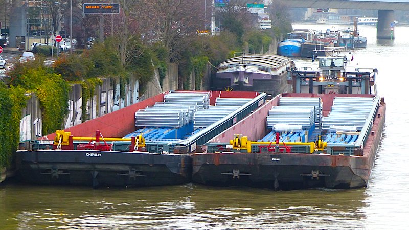 Sécuriser la piste de course éphémère a nécessité 1.075 blocs de béton de 4 tonnes chacun ainsi que 400 tonnes de grilles de protection. Pour les acheminer, la Fédération internationale automobile, en partenariat avec "HAROPA-Ports de Paris", a fait appel à la société AXIMUM (filiale de Colas). Embarqué depuis le port de Limay par "TMF Operating", le matériel a été transporté par voie d’eau par la CFT jusqu’au port du Gros Caillou, au plus près des Invalides, puis chargé sur des camions pour les centaines de mètres restants... "Au total, ce sont plus de 180 rotations de camions qui ont été ainsi réduites au « dernier kilomètre » dans Paris" précise HAROPA-Ports de Paris.