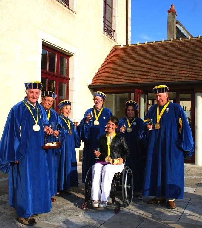 D’étranges personnages vêtus de costumes bleus moyenâgeux sont venus la kidnapper dans un minibus et l’emmener à Sancerre, tout là-haut sur son piton. À la Maison des Sancerre, la Confrérie de Sancerre - c’était eux - l’a fait prêter serment sur un verre du vin à la robe d’or et sur un morceau de crottin de Chavignol. Partager le meilleur. C’est ainsi que Nathalie Benoit est devenue ambassadrice de la Confrérie de Sancerre. Elle a aussi promis de revenir.