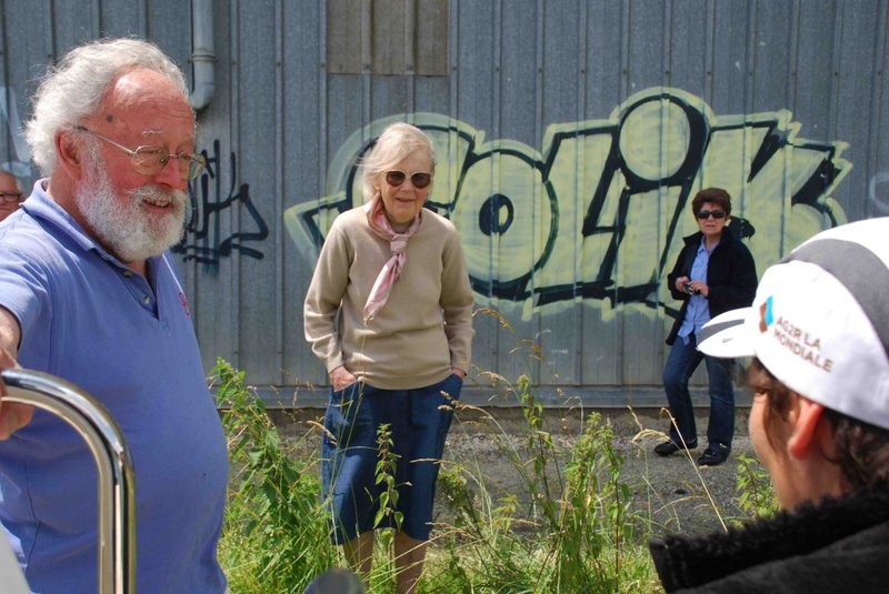 Vers 13 h, nous avons suspendu notre descente vers le sud pour nous restaurer dans le port industriel de La Chapelle-Montlinard, sous un énorme silo à grain. Là nous attendaient Guy et Ruth Toye, qui tenaient absolument à rencontrer Nathalie Benoit. 50 ans que ces sujets britanniques ont quitté leur île et sont venus s’installer en France avec leur bateau. Ils possèdent toujours le bateau, mais habitent maintenant une maison en dur devant le canal. Ils voulaient lui remettre une collecte de dons de leur association, "Les amis du port". Ils nous avaient réservé une place au quai de la halte fluviale, et, après le déjeuner, nous ont invités à prendre le café. ....