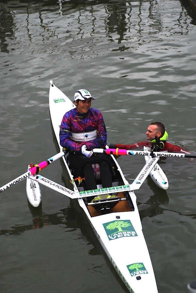 En ville, ou aux écluses, tous veulent savoir quand nous passerons à tel ou tel endroit, pour y être. Les clubs d’aviron y sont pour beaucoup, bien sûr, et les accueils sur les quais des villages sont si gentils, si chaleureux, que l’on sent un élan incroyable vers cette petite femme aux cheveux courts et au sourire craquant qui se déplace en fauteuil ou en béquilles lorsqu’elle sort de son skiff.