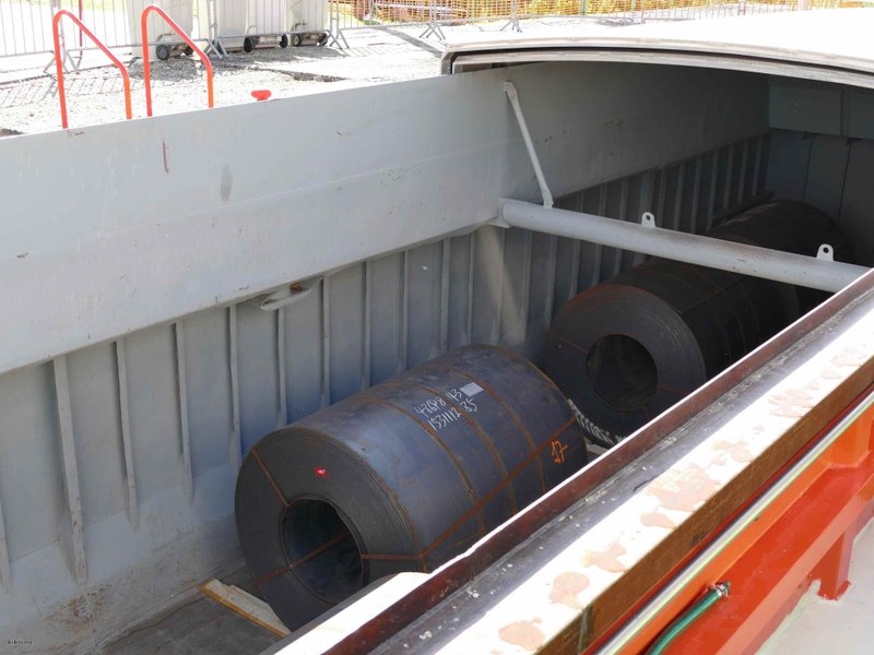 Cerise sur le gâteau, en fin de matinée, le convoi "Sherpa/Sherpa Jr", avalant, arrivait à l’écluse et commençait à descendre, lorsque le marinier, Michael Cornu, a proposé aux agents de V.N.F. d’ouvrir ses panneaux d’écoutille pour dévoiler sa cargaison aux visiteurs. Ni une ni deux, la manœuvre a été arrêtée et le bateau a été remonté. Devant la cale ouverte, le batelier expliquait : « Le convoi, composé d’un automoteur-pousseur et d’une barge, transporte 29 coils (*) de 29 t (soit 841 t). On a chargé à Anvers et on se rend à Bonneuil-sur-Marne pour vider chez Bamesa, un gros client de la voie d’eau, fournisseur d’acier pour plusieurs sociétés des secteurs de l’automobile, de l’électroménager, de l’aviation… »