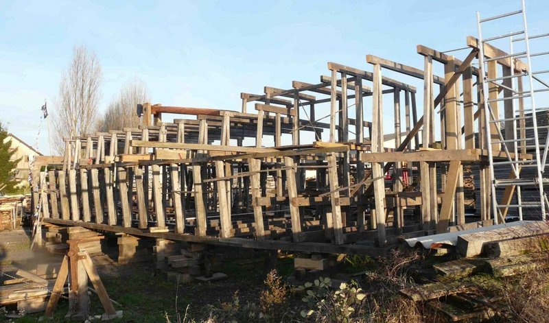 Les "Bateliers de la Marne" construisent un grand bateau en bois