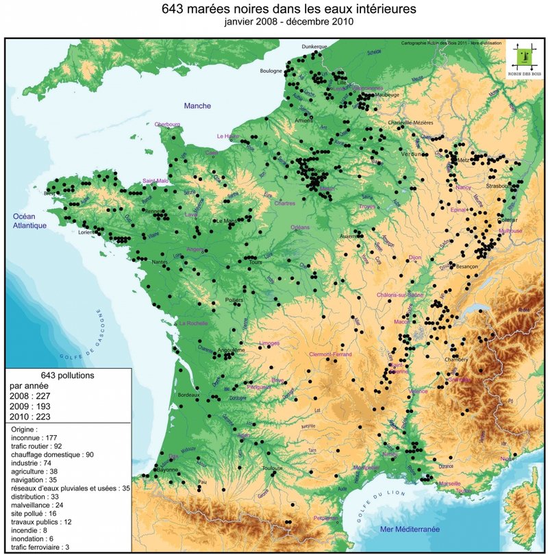 L’association de protection de la nature "Robin des Bois" a rendu public son second « Atlas 2008-2010 des marées noires dans les eaux intérieures ». Entre 2008 et 2010, l’association a recensé 643 pollutions aux hydrocarbures dans les rivières et les canaux... ....