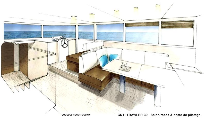 Sur le Vieux Continent, les trawlers de plaisance sont pour la plupart construits en Turquie, en Slovénie… Chez C.N.T.I.**, ils sont « Made in Bretagne ». Et, à prix comparable, 220 000 €, le client peut s’impliquer en direct dans l’évolution des équipements et des aménagements...(*) NOTE 1 => voir Fluvial n° 220 - mars 2012 – « Rhéa trawler 43 ».