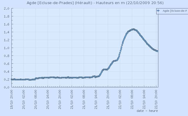 Le niveau des eaux de l'Hérault était monté de 1,40m en quelques heures, après les récents et violents orages dans la région.