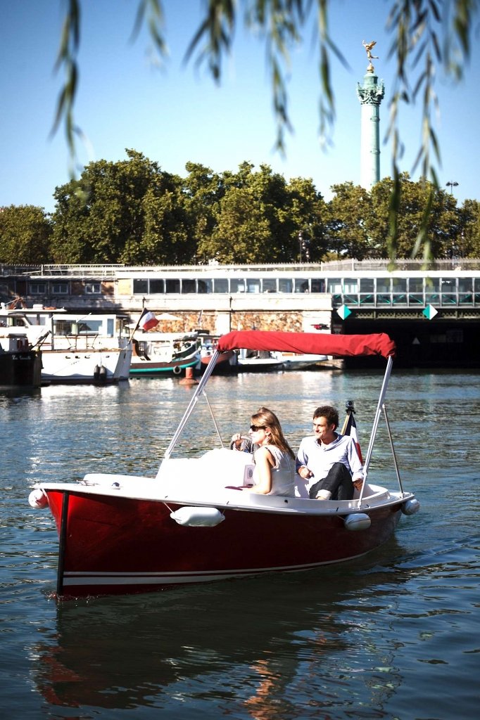 Depuis début mai, "Marin d'eau douce" propose quinze bateaux électriques en location sur le bassin de la Villette. Longs de 4, 5 ou 6 m, ils sont adaptés pour 5 à 11 personnes et peuvent être loués à l'heure ou à la journée. "Vous arrivez en métro et en dix minutes, vous êtes sur l'eau, capitaine de votre propre bateau, pour une ballade entre amis ou en famille". Baptisés "Mille sabords", "Zouave" ou "Moule à gaufre", les jurons favoris du capitaine Haddock, les bateaux sont silencieux et faciles à manœuvrer. "Nous conseillons le canal de l'Ourcq sur lequel on peut parcourir une vingtaine de kilomètres. Le canal Saint-Martin et ses écluses sont réservés à des capitaines un peu plus aguerris".