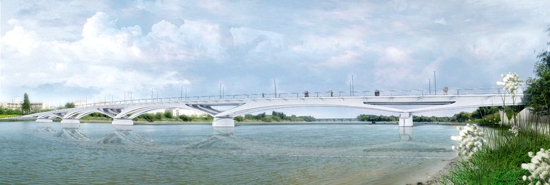 Le pont de Pirmil reliera Saint-Sébastien-sur-Loire à l'île de Nantes. Son design a été conçu pour se fondre discrètement dans le paysage : un fin tablier de béton supporté par des arcs métalliques. Écologie oblige, les concepteurs ont opté pour un ouvrage étroit (17,15m), censé favoriser la coexistence des automobiles, cyclistes et piétons. Le pont de Pirmil accueillera deux voies automobiles, deux pistes cyclables et deux larges trottoirs en bois, sur 300m de longueur.