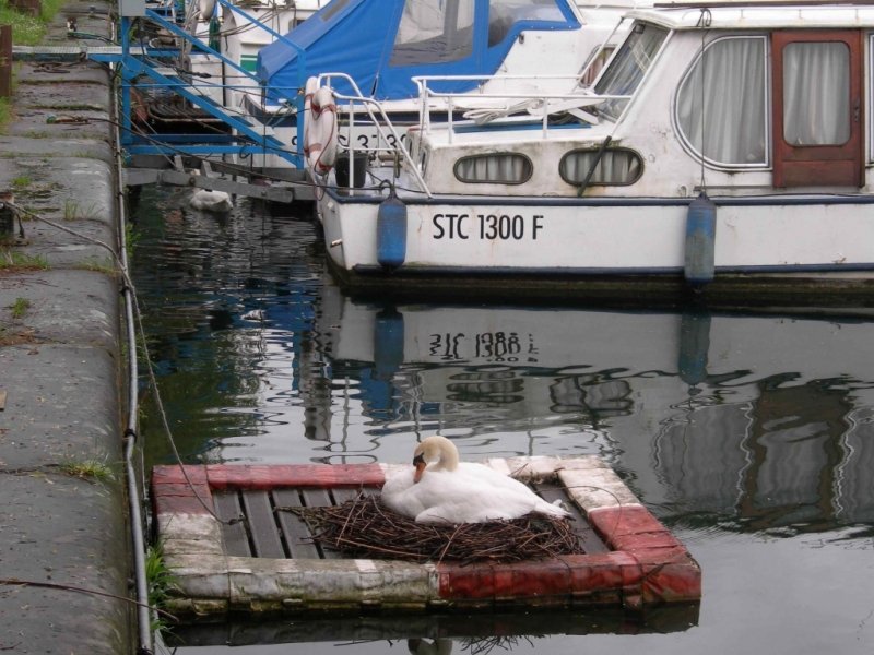 Pas farouches les cygnes qui nidifient au milieu des bateaux !