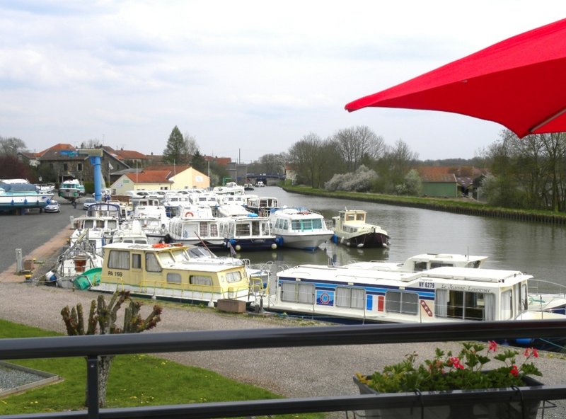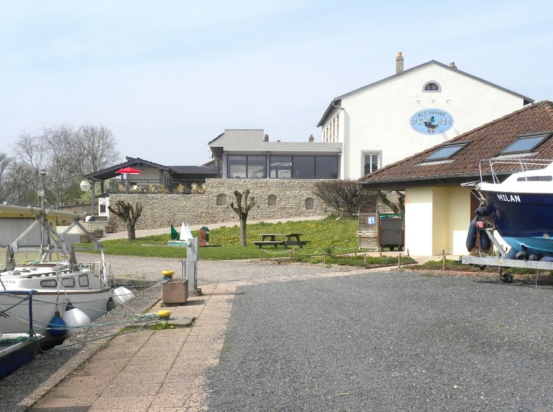 Depuis la grande véranda climatisée, on contemple à loisir la navigation et les bateaux amarrés aux catways. Si vous décidez de vous y arrêter, vous pourrez donc surveiller votre bateau du coin de l'œil tout en dégustant une des spécialités du Chef. Des spécialités régionales bien sûr. Et nous vous recommandons : ses escalopes de foie gras poêlées, ses pommes de terre au munster, son ris de veau poêlé au myrtilles, son émincé de porc au miel et mirabelles, ses beignets de carpes, sa tête de veau sauce gribiche... Ah, sa tête de veau sauce gribiche ! Nul besoin d'entrée avec elle, tant le plat est copieux, accompagné, comme il se doit, de crudités variées, et, le tout pour 14,50 €.