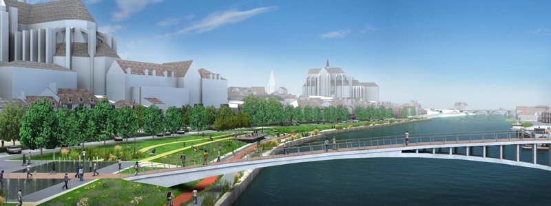 C’est celui qui prévoit « du stationnement sur les deux rives, une circulation automobile en sens unique (du pont Paul-Bert au pont de la Tournelle), une voie cycliste et piétonne de chaque côté en bord de rivière, un miroir-d’eau fontaine au débouché de la rue Sous-murs, des terrasses permettant des animations, un passage piéton restauré sous les ponts Jean-Moreau et de la Tournelle, des aménagements paysagers au square Roscoff, la construction d’un kiosque… ».