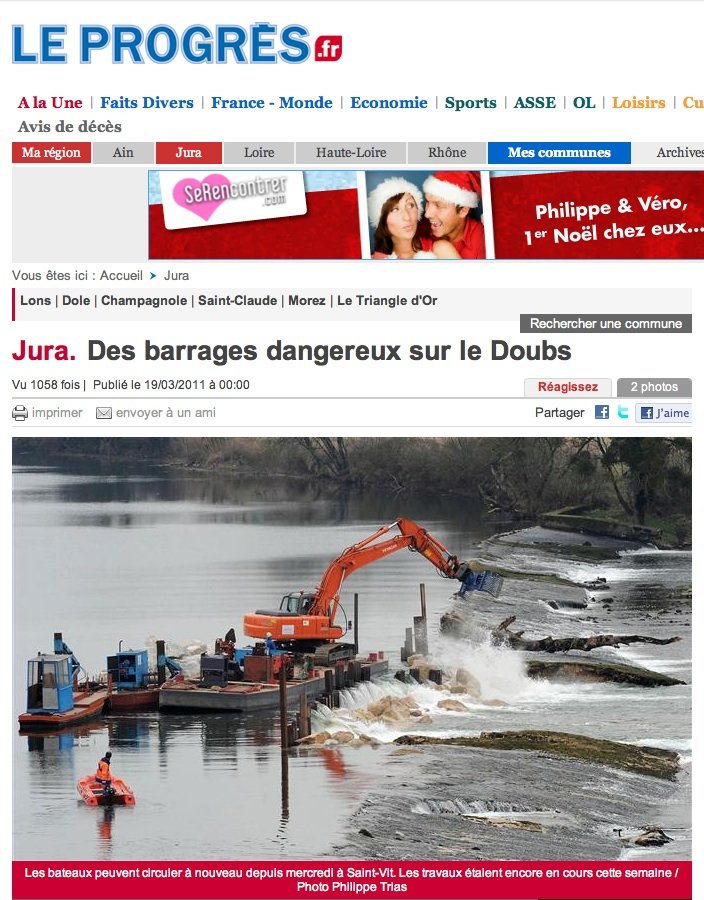 LE PROGRÈS => Des barrages dangereux sur le Doubs