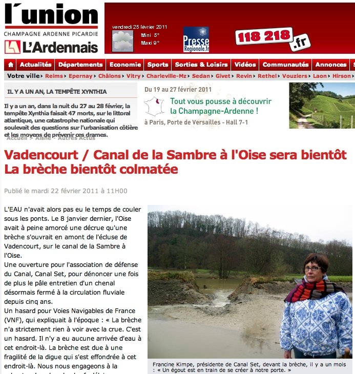 L'UNION => Vadencourt : la brèche du canal de la Sambre à l'Oise bientôt colmatée ?