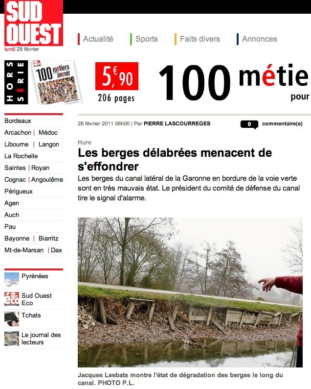 SUD-OUEST => Les berges délabrées menacent de s'effondrer