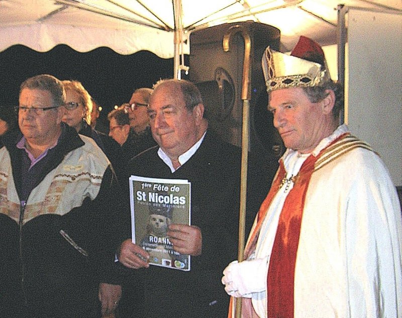 Portant mitre et crosse, sa hote débordant de livres, de papillottes et de pains d'épice à son effigie, le Saint Patron des bateliers et des enfants a débarqué, comme il se doit, d'un bateau. Il a félicité et récompensé les lauréats du concours de dessins dont le thème était, cette année, "Roanne, port international". Puis il a goûté le vin chaud et prêté une oreille attentive à l'"Hymne des Mariniers" joué en l'honneur des bateliers de Roanne. Rassemblés sous les ordres de leur maire, les mariniers avaient repoussé les Autrichiens en 1814. Un acte de bravoure qui valut la légion d'honneur à la petite cité batelière.
