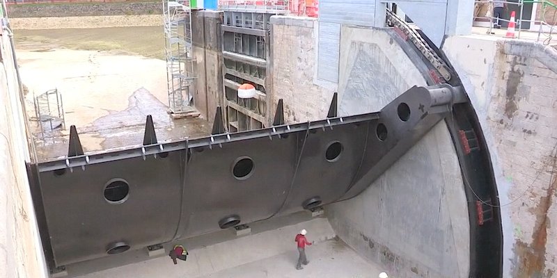 Une incroyable vanne anti-crue est à nouveau tapie au fond de l'écluse de Saint-Maur