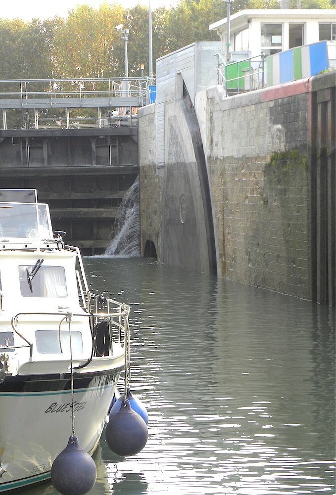 En période normale de navigation, la vanne reste tapie au fond de l’écluse. Mais, dès les « plus hautes eaux navigables » (PHEN) atteintes, les portes amont sont fermées et la vanne relevée. Puis les portes sont rouvertes et la vanne peut être progressivement abaissée pour laisser passer une partie du débit de crue et permettre une décharge hydraulique contrôlée.