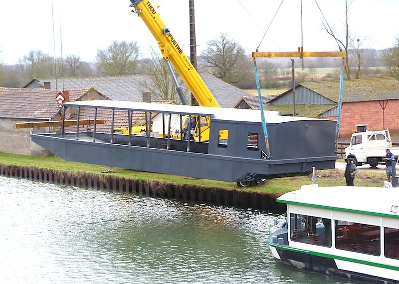La double coque métallique de "Vent de Galerne", longue de 25 m, large de 5 m et d'un poids de 25 tonnes, a été fabriquée à Thou dans le Loiret par l'entreprise de chaudronnerie Thou Industrie. Elle a été mise à l'eau à l'aide de deux grues, le vendredi 30 janvier, sur le canal latéral à la Loire, à la halte nautique de Beaulieu-sur-Loire. Kleber Morel, gérant des "Bateaux touristiques" qui exploitent six bateaux à passagers et un gite sur l'eau à Briare, a ensuite poussé la coque nue jusqu'au bassin des Prés Gris à Briare, avec son bateau "Cœur de France". "Dans les mois qui viennent, nous allons procéder nous-mêmes aux aménagements, avec un habillage extérieur en sapin de Douglas et l'installation d'un mât abaissable et de voiles à la façon des anciennes gabarres". Les espaces intérieurs, sur deux étages, seront également habillés de bois. Ils pourront accueillir 60 passagers en repas ou 80 passagers en promenade.