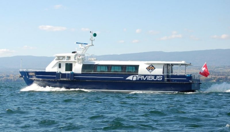 Note => Faut-il le rappeler, les deux navettes transfrontalières "Navibus" ont été construites en 2007 par le chantier SEEM Merré de Nort-sur-Erdre (cf FLUVIAL n°172 - p12). Ces deux superbes bateaux peuvent emmener 120 passagers à 50km/h. Ils sont poussés par deux moteurs Caterpillar de 900kW !...