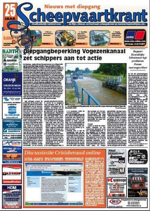 Les mariniers en ont ras le denbord ! La réduction du mouillage à 1,60m sur le canal des Vosges pendant une bonne partie de l'été et l'annonce de son chômage du 1er au 30 septembre, auront été (façon de parler) les dernières gouttes qui ont fait "déborder la vase". La liste des doléances n'en finit plus, et "Scheepvaartkrant", le journal néerlandais de la batellerie, y consacre plusieurs pages (traduites en français) dans son édition du 22 juillet dernier : ....